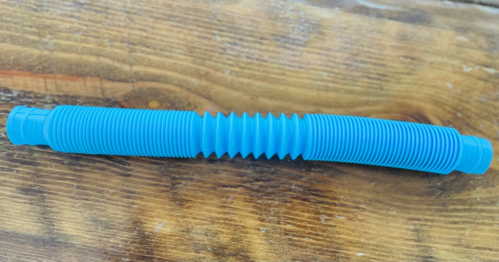 This is another toy I found while looking for stocking stuffers last year. They are called pop tubes and fairly inexpensive, especially if you buy them as a set. (Which I recommend. My kids can play rough and sometimes it’s nice to have a couple back ups ready to go.) This toy provides a similar outcome as the one listed above. My kids seem to like this one a little more however, I think because of the noise that comes with pulling. Vincent’s new favorite thing is watching a pom Pom ball slide down the tube and into his sensory bin. Whatever works kid!