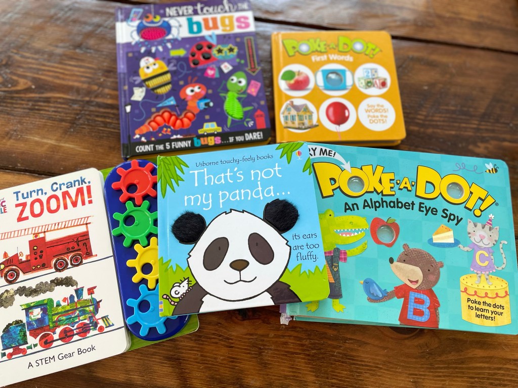 Basically when looking for books just look at what skills you are wanting to work on with your kiddo. Are you trying to keep him engaged? Meet a sensory need? Work on pointing and identifying? Each of these books does something different. Books with different textures are literally everywhere now, even at the grocery store. Just keep your eyes peeled when out and about!