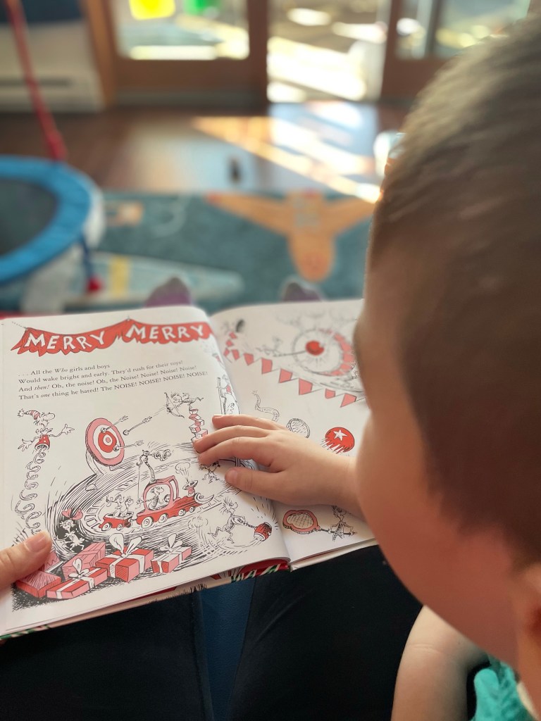 How the Grinch Stole Christmas! Vincent and I take turns reading pages. Listening to him read is one of my favorite things.