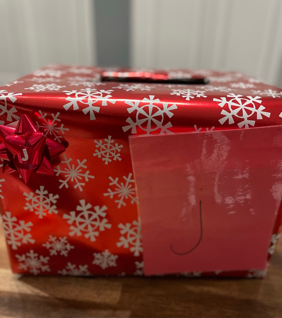 We placed our box under the tree in the playroom. Let’s see if it’s a big hit tomorrow!