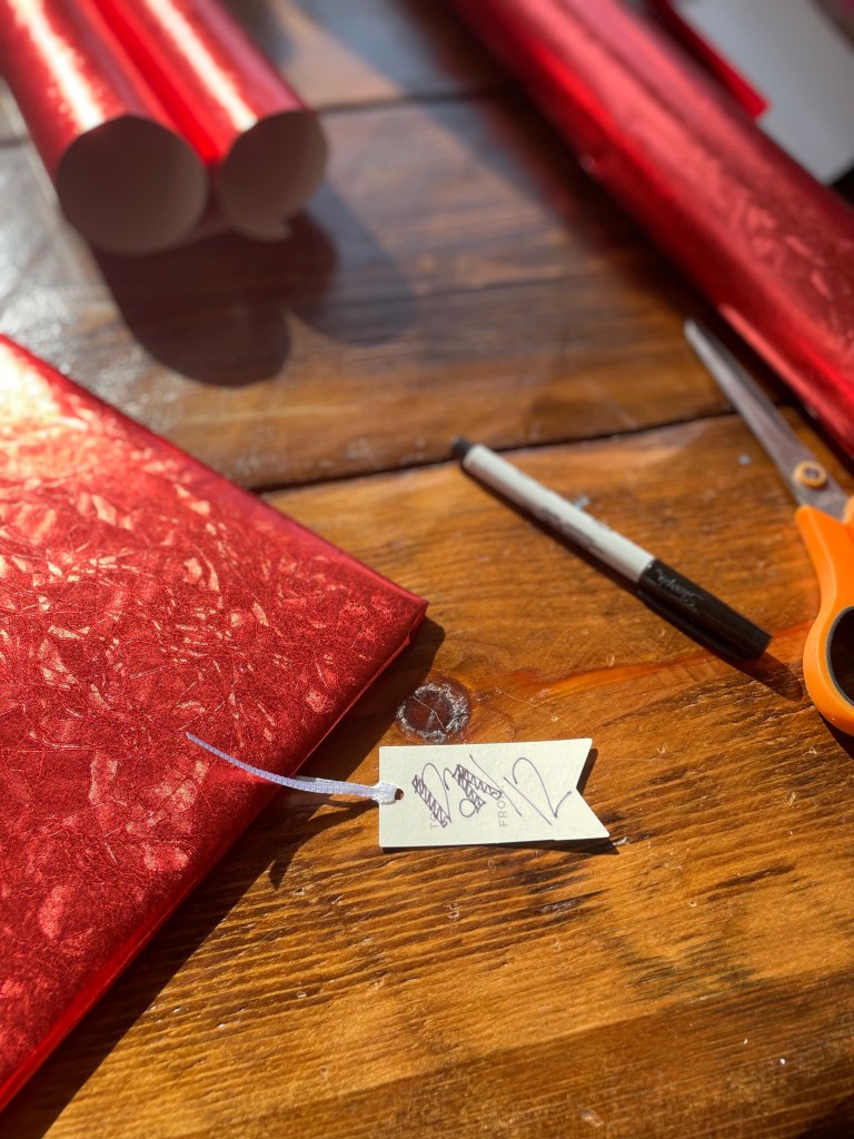 Tags- last year I literally took a sharpie to the wrapping paper and labeled them that way 🤷🏽‍♀️