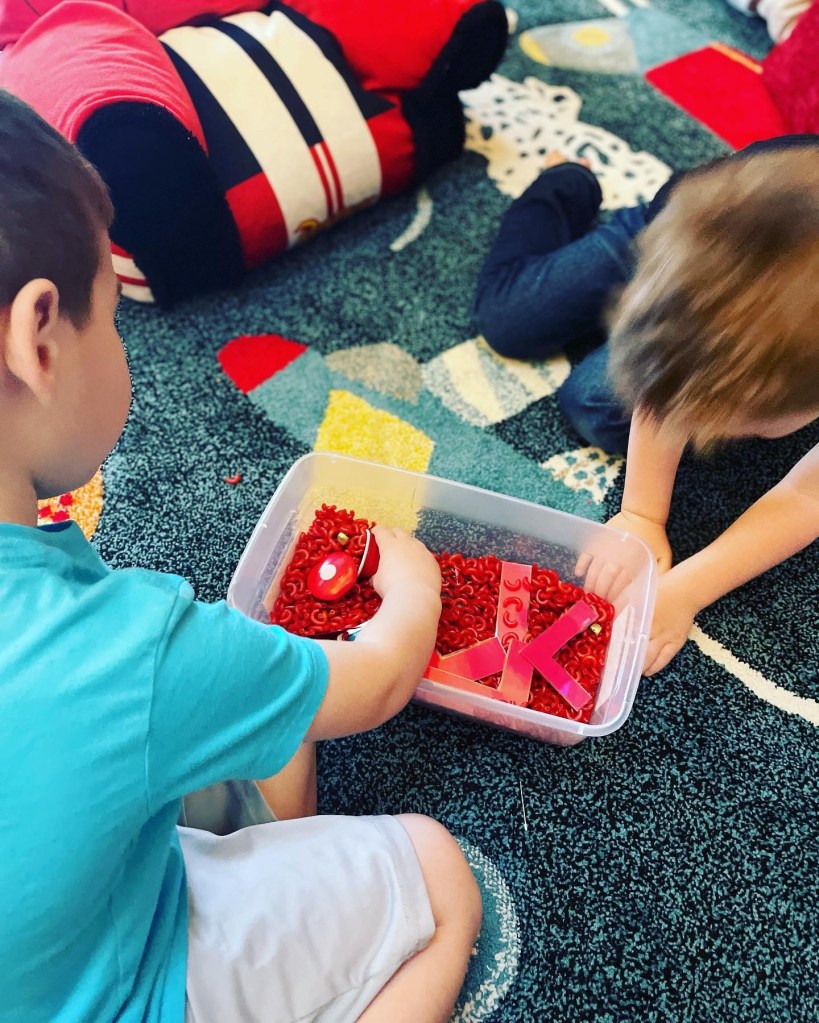 For example, Maxwell enjoys heavy work, sensory bins and any type of movement!
