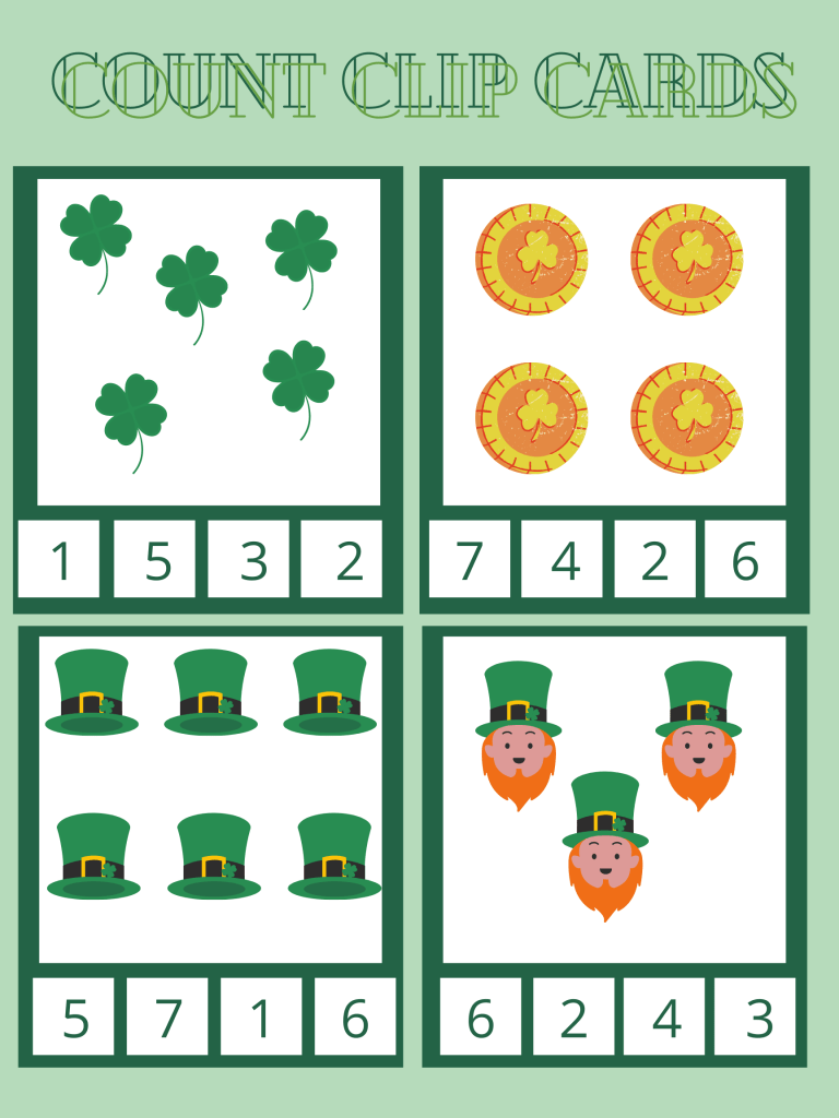 COUNTING CLIP CARDS: These cards are meant to be printed, laminated and then cut out. Have your student/child use a clothespin to select what number of items is shown in the picture. (When purchased, 2 sheets will print out- allowing your student to work on identifying numbers 1-8).