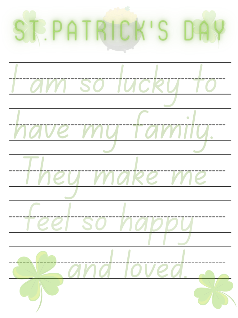 TRACING: Have your students work on their penmanship with this St. Patrick’s Day tracing activity. TIP- If your student has a hard time staying within the lines, try using a highlighter on the lines above and below where they are supposed to write. This helps my oldest visually see the lines.
