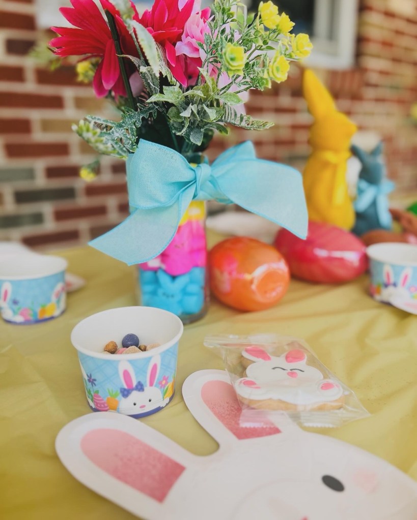 Each place setting had a plate, cookie, and bowl of “bunny bait” trail mix!