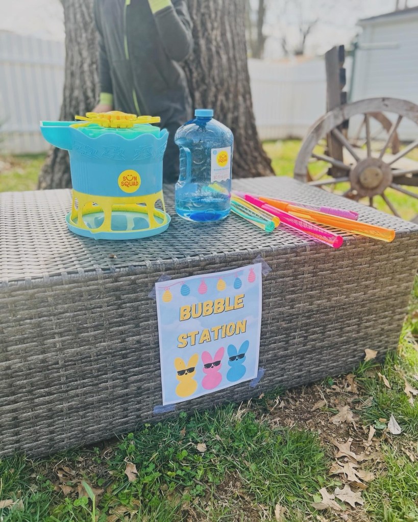 We had kiddos ages 1-8 here so we kept the activities pretty simple. The most fun and easiest thing to set up at any outdoor party is a bubble station.