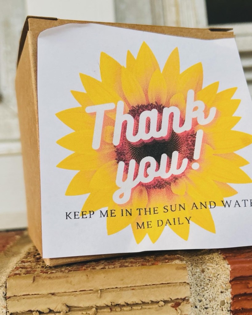This year we sent each kid home with a small cardboard box filled with a sunflower! 🌻 Inside the box is a small pot filled with potting soil and a sunflower seed.