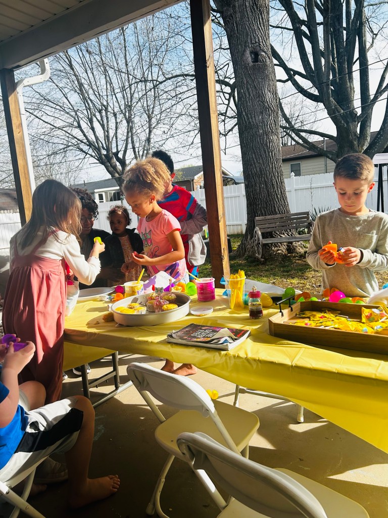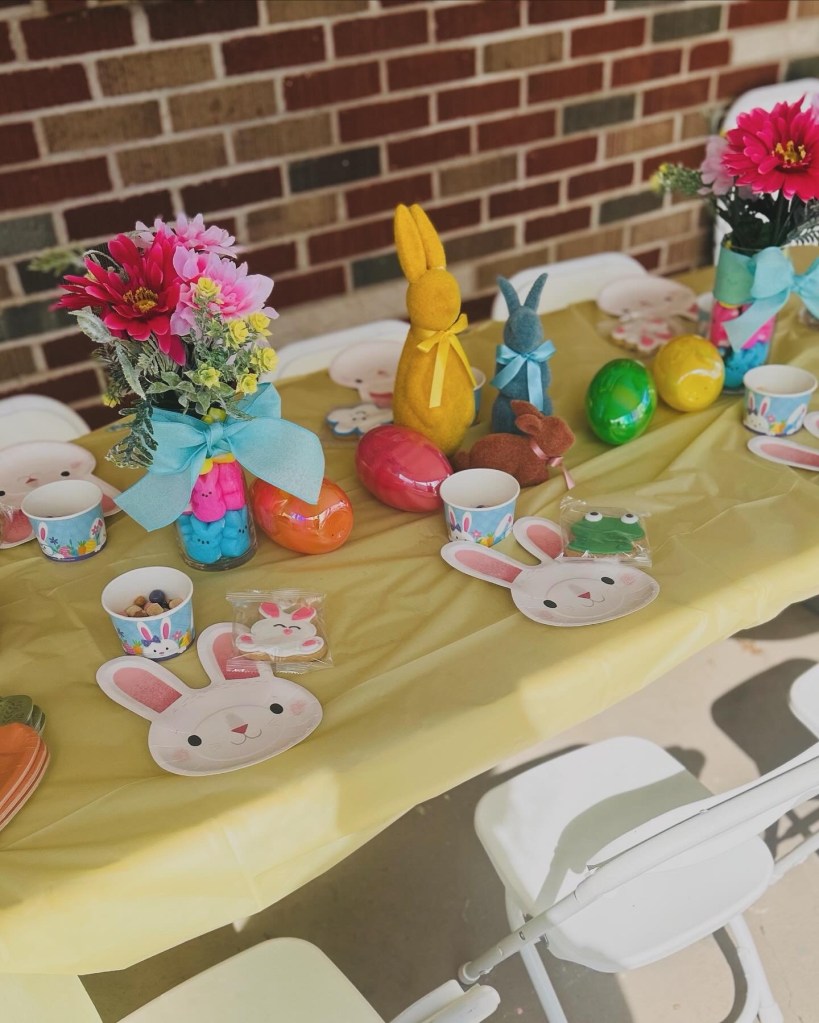 Something I didn’t have time to do but wish I had… was make a toddler area for the Easter egg hunt. These eggs would be filled with items the younger kiddos can’t choke on like cheerios, goldfish, etc.